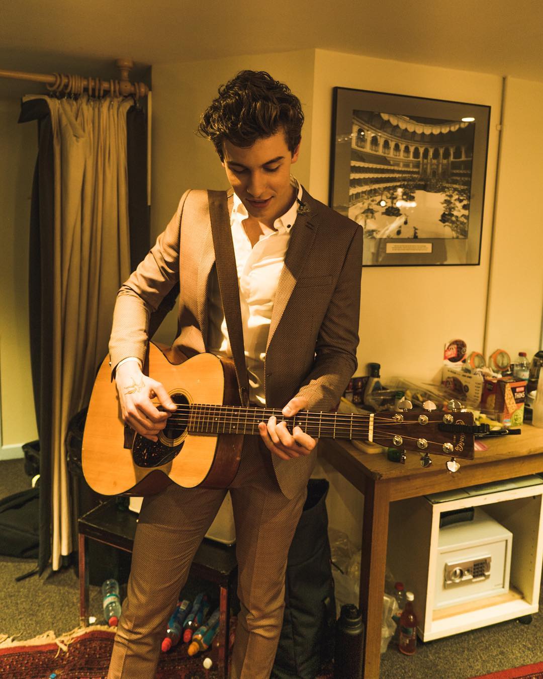 Mendes backstage getting ready to perform for the Queen